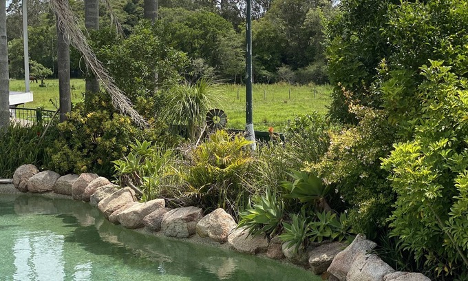 Situated on 16 picturesque acres. Overlooking Resort style saltwater pool. 1bedroom cottage. New kitchen with stone bench top and bathroom. Living area with fireplace and stone dining table. Slate floors. Ceiling fan. Foxtel. Large leather lounge in lounge room. Dining area with stone/glass dining table. Ceiling fan in bedroom. Fireplace. Large fridge/freezer, microwave, oven, washing machine. Bathroom with shower and seperate toilet. Verandah with outdoor table. Ceiling fan in lounge room.