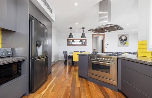 At Jindy Snowy Mountains Retreat, you'll find an array of amenities tailored for comfort and convenience. The property features central heating, a cozy gas fireplace, and underfloor heating in the bathrooms to ensure that your guests stay warm during winter festivities. A well-equipped kitchen, highlighted by a teppanyaki cooktop, allows for delightful culinary experiences. Additionally, a large drying room for ski gear ensures that everyone can enjoy winter activities before returning to this inviting home away from home.
