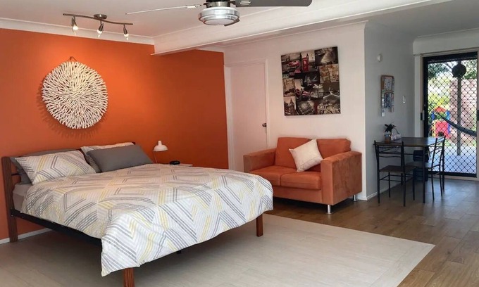 A self contained large studio with private bathroom that is really near to Boyne River & Lilley’s Beach South. A jogging track is next to Boyne River. Just 2 minute walk to Boyne Tannum Hook Up show ground. 3 minutes driving to Tannum Beach. It takes also a very short walk to supermarket, coffee shops, etc. It’s perfect for couples who like to enjoy a relaxing holiday or business travellers who need a quiet stay.