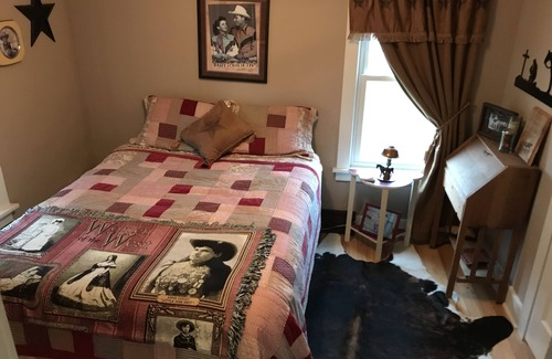 Our quaint ranchhouse is unique and the property is expansive. If you're looking for a cozy place to relax, get some fresh air, or experience a breathtaking sunset, you will find that here. Your dog is welcome, but please - no dogs in the beds, and please clean up after your dog in our houseyard. For your convenience we keep our kitchen stocked with plenty of coffee and teas for you to brew, a sampling of our honey from the ranch, cooking oil, sugar and a variety of spices. The kitchen is fully equipped. We'll have some of our ranch-raised beef in the freezer portion of the refrigerator (for purchase). We have a gas grill on-site or you can cook over the fire outdoors or atop our woodburning stove in the living room. There is cast iron cookware in the kitchen to use for those purposes. Give it a try! We have plenty of towels to use in the bathroom, shampoos, soaps, and a hair-dryer. There's also an iron and ironing board downstairs to use if you need it. Additional bedding and pillows are available for floor mattresses. We hope you'll feel right at home at our ranchhouse.