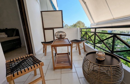 Experience modern comfort just 200 meters from the beach at JM Apartment. This stylish first floor, two-bedroom retreat features a fully equipped kitchen, cozy living room with a smart TV, and a private balcony with peaceful green views. Located near the town center, it’s within walking distance of restaurants, shops, and cafes. Perfect for families, couples, or friends. Enjoy a serene coastal getaway!