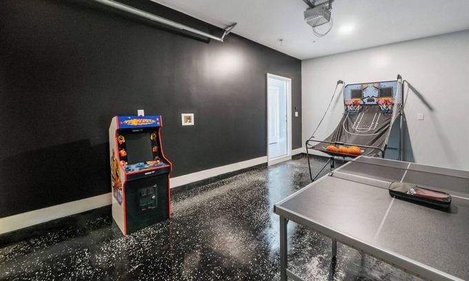 Each home boasts a gaming garage, board games, a deck & essential baby items like pack-n-plays & highchairs.