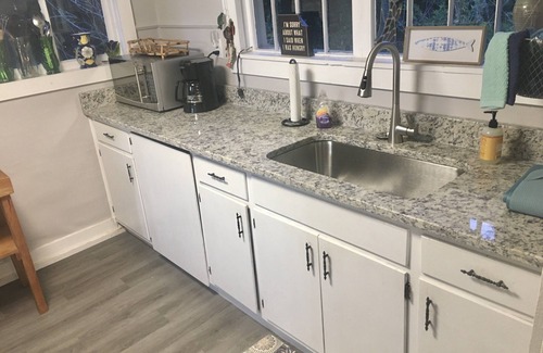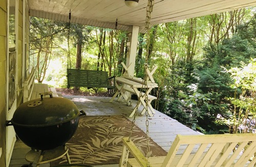 Peaceful farmhouse cottage features 2 king beds, 1 double, and a sleeper sofa. Kitchen has been remodeled with new granite countertops and all the basics you would need. WiFi, refrigerator, stove, microwave, toaster, washer, dryer, hair dryer, iron and ironing board, 65” smart tv w/Direct tv satellite, DVD player, radio, charcoal grill, fireplace, fire pit, huge porch w/ swings and picnic table.