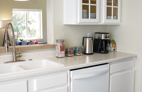 Fully Equipped Kitchen with microwave, oven, dishwasher, cookware, dishes, utensils, and kitchen tools.