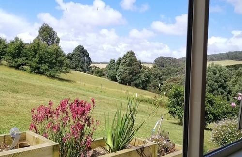 You can hear the sounds of the ocean just a short 3.5km away at Johanna Beach. Stroll along the sandy shores and watch the stunning sunset over the water. If fishing is your thing you might just like to drop in a line and catch a fish or 2. For those who like a slower pace you can laze away on the day bed as the morning sun fills the whole house with its golden rays.Relax in the living area whilst watching TV/DVD or simply take in the peaceful outlook of the meadows and rolling hills. This 12 acre property has its own forest filled with fern gullies. Take a short stroll along the tracks through the majestic tall timbers. At the end of the day relax and enjoy a BBQ with a glass of your favourite drink. Or just cuddle up next to the warmth of the wood fire in cooler months.