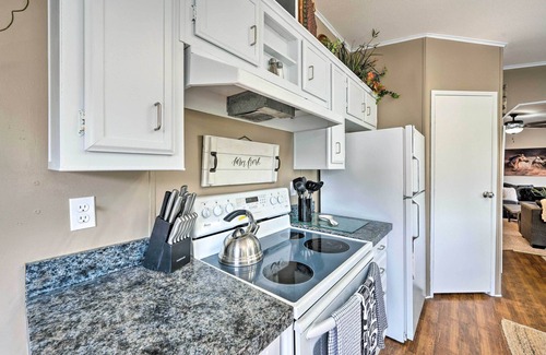 KITCHEN: Fully equipped, Keurig coffee maker, toaster, blender, air fryer, dishware & flatware, spices, cooking basics, electric range, Crock PotOUTDOOR LIVING: Covered deck w/ lounge area, grill, covered lounge/picnic area, lake access, private yard space, 110 acres, hiking trails, corn hole, badmintonINDOOR LIVING: Two TVs,chrome cast, electric fireplace, dining table, ceiling fans, DVD player, movie library, board games, portable Bluetooth speakerGENERAL: Washer & dryer, towels, linens, complimentary toiletries, central air conditioning/heatFAQ: Step-free access, pet fee (paid pre-trip)PARKING: Gravel driveway (6 vehicles)