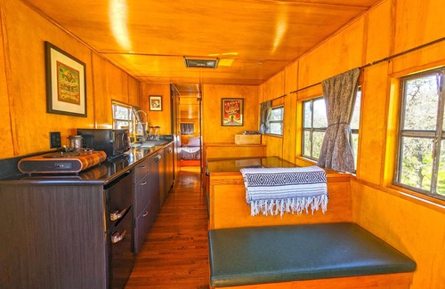 Sleep under the stars and among the vines in the super cool, fully restored 36' Spartanette trailer named after the legendary Johnny Cash! Cash features a cozy double bed, a kitchenette with a microwave, mini-fridge, hot water heater, and French press. Enjoy tunes on the record player with vinyl, and stay comfortable with AC and heat. Outside, kick back in Adirondacks or dine at the table. Just steps away, youll find five bathrooms with hot showers. Towels, linens, and basic kitchen supplies are all provided. This stunning custom trailer sits on a 120-acre vineyard ranch with rolling hills, ancient oaks, and epic sunset views. You can indulge in wine tasting, BBQ, fire pit, hiking, frisbee golf, and even visit alpacasall just 15 minutes from downtown Paso Robles!