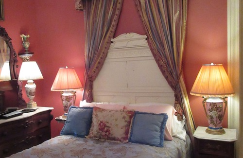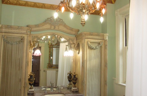 5 bedrooms which includes a 2-room suite that has a beautiful and spacious bath with a claw foot tub, One Charming style Room with Queen size bed and private Bathroom with shower, 1 large Master Room upstairs with a Phyllis Morris mirrored Canopy 4 poster bed, large bathtub and spacious bathroom, Downstairs Large King-size bed and private Bathroom with Large Bathtub, Elegant Dining Room, Grand staircase with Large Stained-glass window, Wi-Fi and new TVs in all