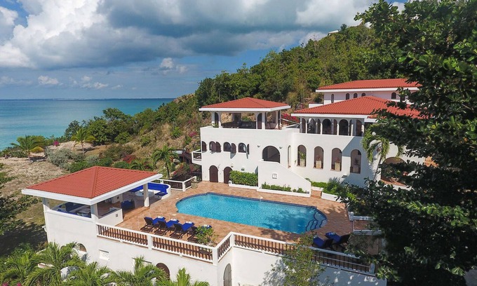 Best-rates for the Les Terres Basses villa starts from $1,909 per night with includes Pool, Internet, TV, Ocean View, Balcony/Terrace, Security/Safety, Barbecue/Outdoor Cooking, Kitchen, View, Private Pool, Oceanfront, Bedding/Linens, Entertainment, Air Conditioner, Parking, Accessibility, Sports/Activities, Child Friendly, Hot Tub with all other amenities. Perfect for Weddings is committed to ensuring every guest experiences a comfortable and extraordinary stay, whether planning a romantic getaway, a honeymoon, a pet-friendly stay, or celebrating with the entire wedding party.