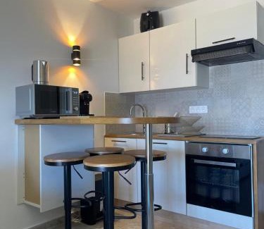 Featuring a private beach area, Joli appartement en front de mer features accommodations in Saint-Cyr-sur-Mer. This beachfront property offers access to a balcony, free private parking, and free Wifi. Toulon Train Station is 14 miles away and Zénith Oméga Toulon is 15 miles from the apartment. The apartment is composed of 1 bedroom, a fully equipped kitchen, and 1 bathroom. A flat-screen TV is available. The accommodation is non-smoking. Plage de la Madrague is a 4-minute walk from the apartment, while Circuit Paul Ricard is 11 miles from the property. Toulon - Hyeres Airport is 27 miles away.