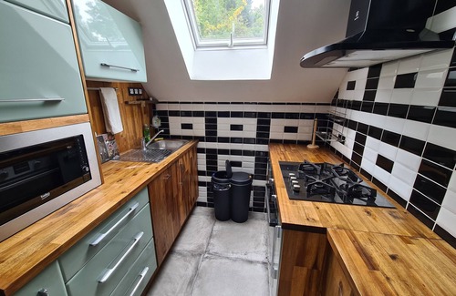 Prepare a home-cooked meal in the kitchen, complete with an oven, a stovetop, and a refrigerator, as well as a coffee maker, an electric kettle, and a microwave. Bathroom amenities include towels, toilet paper, and soap. And because there's a washing machine, you can go a bit lighter on your packing. Other amenities include a living room, bed sheets, an ironing board, and heating.