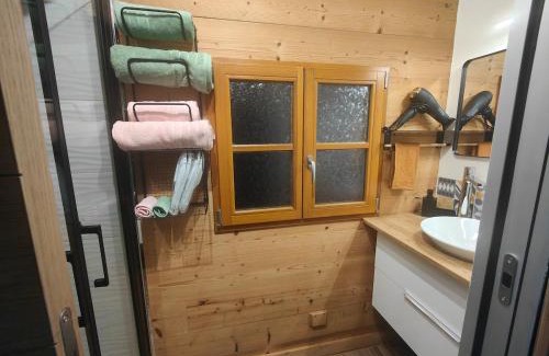 - Self-contained cabin on stilts, sleeps 4, in the vegetation, Haut Jura, altitude 1250m.