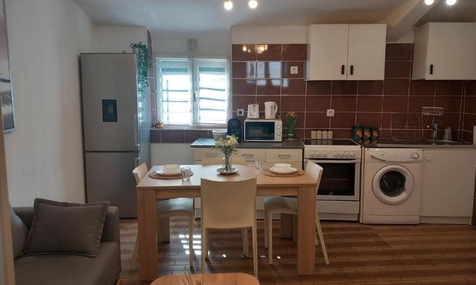 Prepare a home-cooked meal in the kitchen, complete with an oven and a refrigerator, as well as a coffee maker, an electric kettle, and a microwave. Enjoy the WiFi and TV. Bathroom amenities include a hair dryer, towels, and toilet paper. And there's a washing machine, so you can even pack a bit lighter. Other amenities at this 2-bedroom, 1-bathroom rental include bed sheets, an ironing board, heating, and a dining table.
