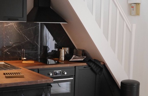 The kitchen is equipped with an oven, a stovetop, and a refrigerator, as well as a coffee maker, an electric kettle, and a microwave. And you won't have to pack extra clothes, because you'll also have access to laundry facilities. Other amenities include heating and a dining table.