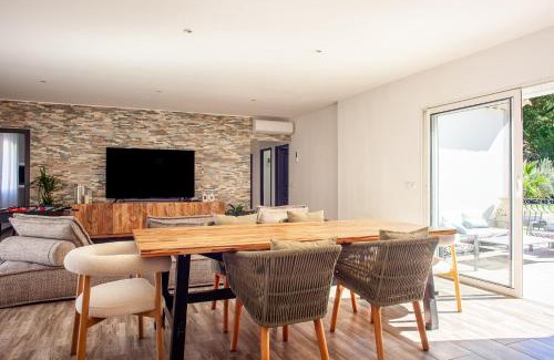 Jolie villa au calme avec piscine offers accommodations in Méounes-lès-Montrieux, 14 miles from Circuit Paul Ricard and 18 miles from Toulon Train Station. This property offers access to a terrace, free private parking, and free Wifi. The property features barbecue facilities and outdoor furniture. The air-conditioned villa consists of 3 bedrooms, a living room, a fully equipped kitchen with a dishwasher and a coffee machine, and 1 bathroom with a bath and a shower. Towels and bed linen are available in the villa. For added privacy, the accommodation features a private entrance. Guests at the villa will be able to enjoy activities in and around Méounes-lès-Montrieux, like cycling and hiking. Zénith Oméga Toulon is 18 miles from Jolie villa au calme avec piscine. Toulon - Hyeres Airport is 19 miles from the property.