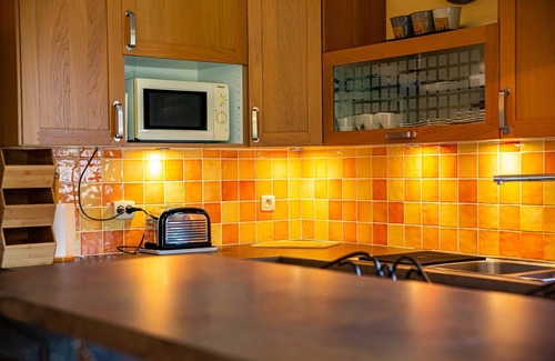 Cuisine entièrement équipée avec arrière-cuisine fonctionnelle (lave-vaisselle, micro-ondes, réfrigérateur, cafetière Dolce Gusto...)