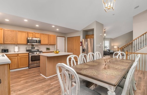 Updated home, with 2 car garage parking, and street parking. The home has updated flooring throughout, and a renovated lower-level bathroom! Comfortable seating throughout, and a table fitting 10 chairs for group dining! Cards and game options available. Fenced backyard!
