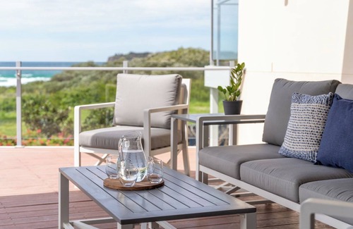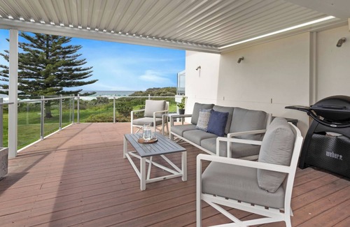 With direct beach access just a 25-meter stroll across the grass, Jones Waterfront Beach Escape provides uninterrupted ocean views. The well-appointed kitchen, featuring high-end appliances and clean lines, overlooks the spacious living area and leads to an all-weather deck with automated shade. Enjoy the sparkling blue horizon and the sound of waves breaking while relaxing in blissful comfort.