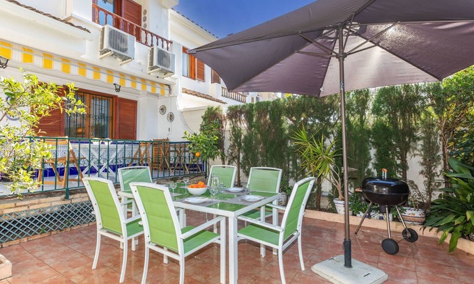 Easy access by motorway A7, exit 45 or 46 cosy, comfortable terraced house "Jorge Comin", 2 storeys, renovated in 2025. 600 m from the centre of Benicassim, in a quiet, sunny position in the residential district, 500 m from the sea, 500 m from the beach, south-west facing position. Private: patio, terrace, garden furniture. In the house: air conditioning. Single garage at the house, public parking on the road. Shop 500 m, supermarket 100 m, restaurant, bar 600 m, bakery 500 m, café 600 m, bus stop 150 m, railway station 1.4 km, sandy beach 500 m, outdoor swimming pool 800 m. Golf course (18 hole) 16 km, sailing school 2 km, sports centre 800 m, walking paths from the house 10 km, cycle lane 500 m, children's playground 100 m. Nearby attractions: Aquarama 2.6 km, Karting 2 km, Vía Verde (25km) 500 m. Hiking paths: Desierto de las Palmas 10 km. Please note: suitable for families. Airfield 33 km from the property. Neighbourhood highly sensitive to noise. Quietness and good behaviour expected.