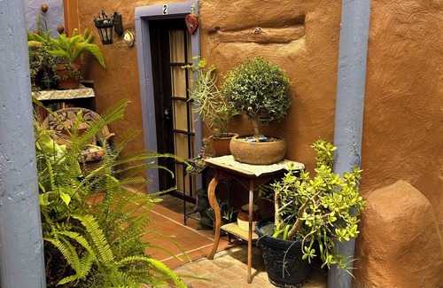 Josefina's King Suite is located just off the Plaza in Historic Old Mesilla. Behind the thick adobe walls, you will find this tranquil retreat. Charmed by the ambiance of our historic Southwestern design and the Garden Greenhouse, our luxurious King Suite offers a cozy step back in time, weaving together old world charm and modern comforts like WIFI, mini fridge, AC, plush bathrobes and more. If the King is already booked, please check out our Queen Suite!
