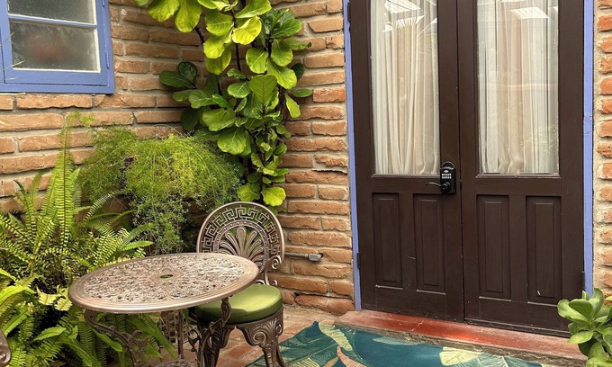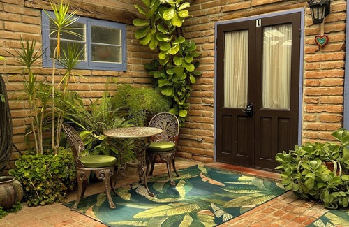 Josefina's Queen Suite is located just off the Plaza in Historic Old Mesilla. Behind the thick adobe walls, you will find this tranquil retreat. Charmed by the ambiance of our historic Southwestern design and the Garden Greenhouse, our luxurious Queen Suite offers a cozy step back in time, weaving together old world charm and modern comforts like WIFI, mini fridge, Smart TV, AC, plush bathrobes and more. If the Queen suite is already booked, please check out our King Suite!