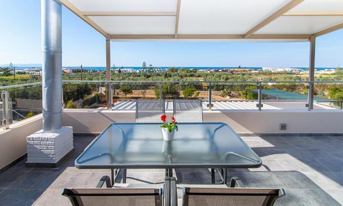 Featuring a garden, Joy Superior Apartment Sea View provides accommodations in Hersonissos. This property offers access to a terrace, free private parking, and free Wifi. The accommodation features airport transfers, while a car rental service is also available. The air-conditioned apartment consists of 1 bedroom, a living room, a fully equipped kitchen with a dishwasher and a coffee machine, and 1 bathroom with a shower. Guests can take in the views of the sea from the balcony, which also has outdoor furniture. This apartment is non-smoking and soundproof. Sightseeing tours are available within easy reach. Analipsi Beach is a 8-minute walk from the apartment, while Anissaras Main Beach is 1.4 miles from the property. Heraklion International Airport is 11 miles away.