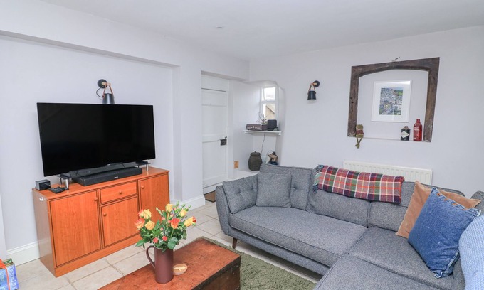 Amenities: Gas central heating. Oven, hob, microwave, fridge, washing machine, dishwasher, tumble dryer. Smart TV, WiFi. Fuel, power, and starter pack for woodburning stove inc. in rent. Bed linen and towels inc. in rent. Two highchairs available. Roadside parking and nearby free car park on a first-come first-served basis. Enclosed garden with patio, lawn, furniture, and barbecue. Two well-behaved dogs welcome. Sorry, no smoking. Shop and pub 0.1 miles. Note: £10 per dog per stay. Note: Good housekeeping bond of £350