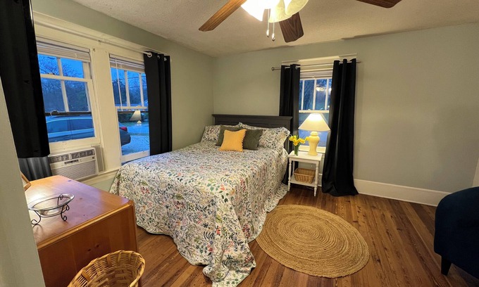 This cozy, well decorated, ground level suite in the downtown historic emerywood neighborhood offers many amenities with parking just a few steps from the front door. Close to downtown, 1 block to the hospital, High Point Medical Center, 3 mins to Rocker Stadium & Center. The en-suite offers a well equipped kitchenette & bathrm along with a cush queen sized bed & 50 inch TV. Guests have sole use of the front porch entryway w/comfortable wicker chairs and cafe table. We have affordable rates!