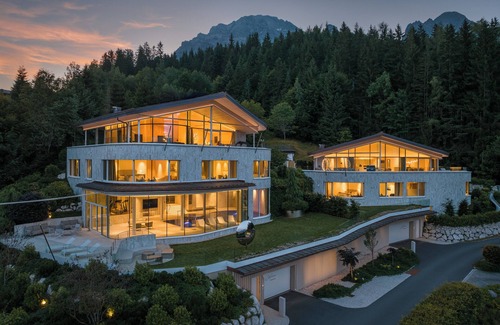 Exclusive services are available on request – such as a butler, a chef, a spa or event team, a chauffeur or even a helicopter transfer from Salzburg, Innsbruck or Munich. Arrival is via a private underground car park with direct lift access. A digital guest folder, self-check-in, smart home systems and discreet cleaning service are a matter of course. We offer a garage with 5 places.