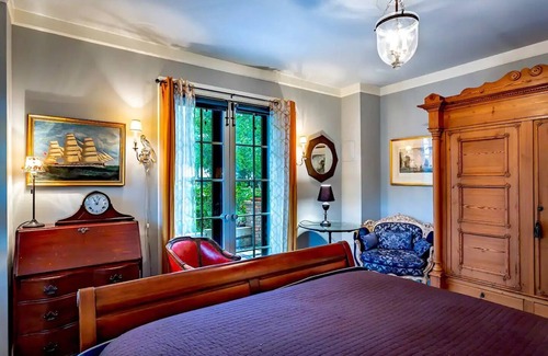 The "Narnia" BEDROOM has a Queen size sleigh bed, rare antiques, small desk, armchairs, and a majestic 18thC Danish WARDROBE.