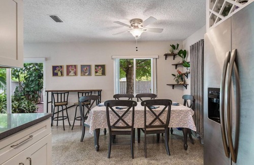 Discover the magic of South Florida at our welcoming Jungle Fortress. Perfect for families, this spacious two-bedroom home boasts a fully equipped kitchen and a large fenced yard for kids and pets to enjoy. Conveniently located near Fort Lauderdale Airport, downtown, and the beautiful beach, this retreat promises an unforgettable stay.