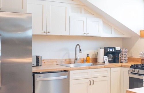 Enjoy a bright and inviting stay in this charming upstairs unit of the historic Carriage House at J.S. Hubbs Guest House. Junior’s Suite features two bedrooms, one bathroom (with tub), and a spacious living area — perfect for families or friends exploring Keuka Lake and Hammondsport’s Village Square, just steps away. With Roku TVs, comfortable furnishings, and off-street parking, it’s a welcoming home base filled with character, comfort, and a touch of family history. NOTE: Junior`s Suite is being fully renovated and will be available starting July 2025. We will update inside photos after renovations are complete.