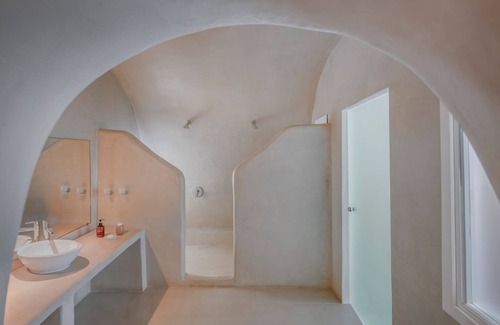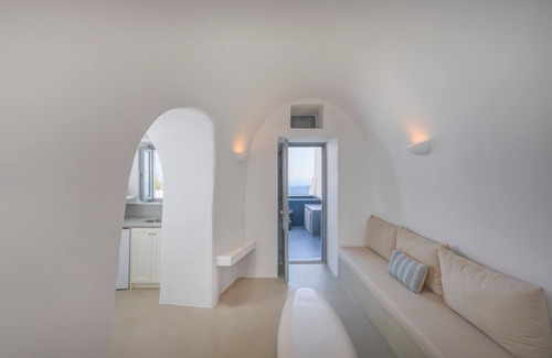 Set in the charming village of Firostefani, the Junior Suite boasts uninterrupted views of the Caldera and the quietly active volcano.