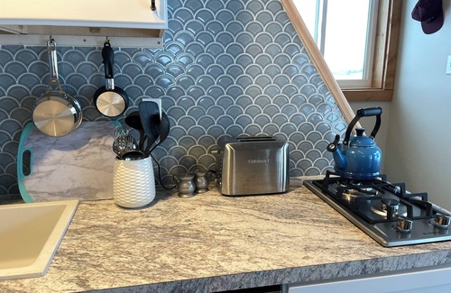 Come stay at the Juniper Cabin and enjoy incredible views of the Wallowa Mountains and the Seven Devils out your front door. This newly built cabin joins our other 2 popular offerings on VRBO- The Wild Iris House and The Camas House. This peaceful retreat features 1 nice bedroom with a queen bed downstairs (480 sq ft), and a spacious loft with a Murphy bed, table, loveseat, and a 55" smart TV upstairs (300 sq ft). The first floor also features a bathroom with a shower, a small living room, and an efficient kitchenette (microwave, 2 burner cooktop, under counter refrigerator, dishwasher, and sink). For your added enjoyment, The Juniper Cabin is stocked with a