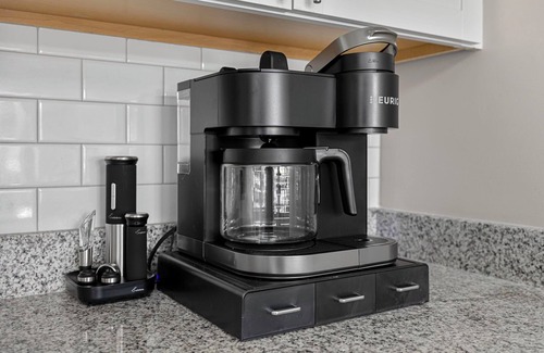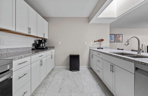 Feeling laid-back? Chill in front of the gas fireplace and watch a favorite show or movie on the extra-wide flat-screen TV. Care for a little gamesmanship? Invite a fellow guest to a game—or two or three—of Foosball, given there’s a top-of-the-line table sitting there in the living room! And speaking of high quality, the fully-equipped kitchen features everything you may need to create scrumptious meals or snacks, including stainless-steel appliances and a host of essentials you’ll enjoy dipping into. Plus, there’s a way-nice stone-top island we hear is a popular gathering place for morning coffee—and we set you up with only Keurig’s good stuff, by the way—or any vacation day planning. Want to share a meal in a more formal setting? We’ve got you covered with a sweet 6-seat dining table to meet your dining needs. There’s also a long hall table we’ve heard guests say serves nicely as a workstation, for those who may want to get some remote work in.