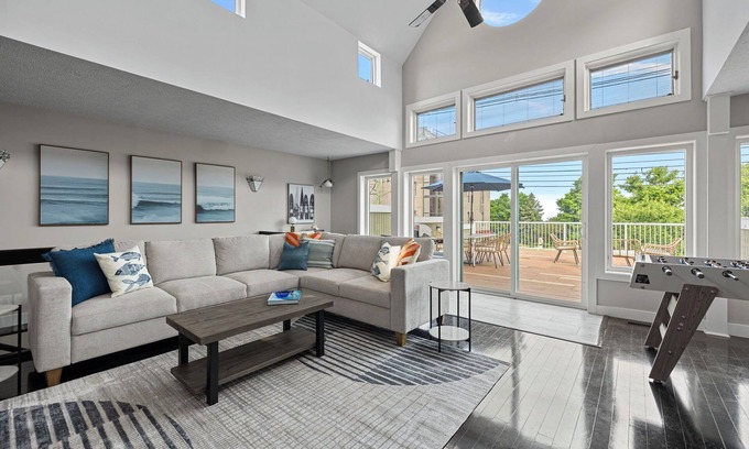 Surf Loft in St. Joseph, MI offers the best vacation experience! Enjoy a gorgeous living space with a fireplace, flat-screen TVs, and a professional Foosball table. Relax on a huge deck with a gas grill. Walk to the beach, park, harbor, arboretum, or explore downtown's boutiques, shops, eateries, and art museum. Featuring a spacious open design LR-DR-Kitchen, natural light, elegant bedrooms, and deluxe bathrooms. Perfect for a restful and memorable getaway.