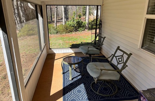 Cozy two bedroom home conveniently located 16 miles from Clemson and 12 miles from downtown Greenville. Private screened in porch facing a wooded lot provides plenty of privacy. Close to the Doodle Trail and the Nalley Brown Nature Park. And just a few miles from The Silos, a great place to eat and hang out with family and friends