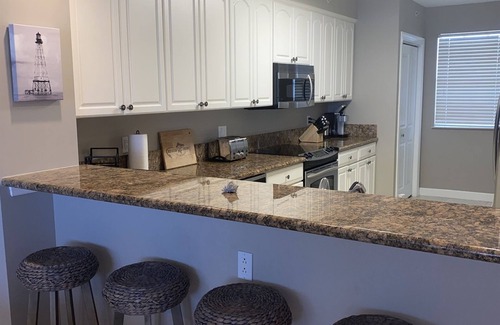 The attention to detail in this unit is unmatched. Chic coastal decor, modern appliances, & ocean/pool views allow those staying to truly immerse themselves in the luxurious island life. Enjoy mornings on your private balcony watching the sunrise. Unwind in the evenings watching movies on your massive flat screen. Cook your fresh seafood in the kitchen equipped with granite countertops & stainless appliances.