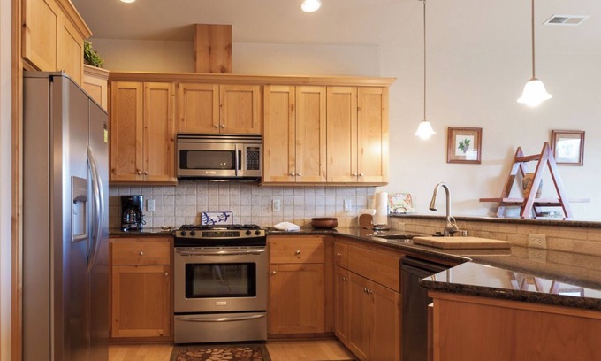 The property boasts an array of amenities designed for comfort and convenience. Enjoy the open layout that maximizes natural light, creating a warm and inviting atmosphere. The living area features plush seating around a stone-framed fireplace, perfect for cozy evenings or celebratory gatherings. With a well-equipped kitchen showcasing modern stainless steel appliances, preparing a feast for your loved ones will be a breeze. Each bedroom offers comfortable bedding and ample storage space, while three stylishly appointed bathrooms ensure everyone has room to relax and unwind after a day of festivities.