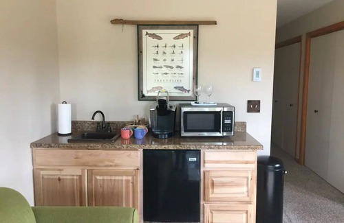 Your comfort is prioritized with our well-appointed 650 sq. ft. guest apartment featuring two cozy bedrooms that accommodate up to four adults, perfect for the wedding party or close family members. The living space includes a complete breakfast bar, a Keurig coffee maker, a mini-fridge, and essential kitchenware. You can enjoy a relaxing private bath stocked with toiletries for extra convenience. Additionally, the property boasts amenities like Wi-Fi, a sledding hill for winter fun, and an outdoor fire pit to create enchanting evenings under the stars. For wedding guests, a large bathroom mirror and ironing board are readily available, ensuring you look your best on the big day.