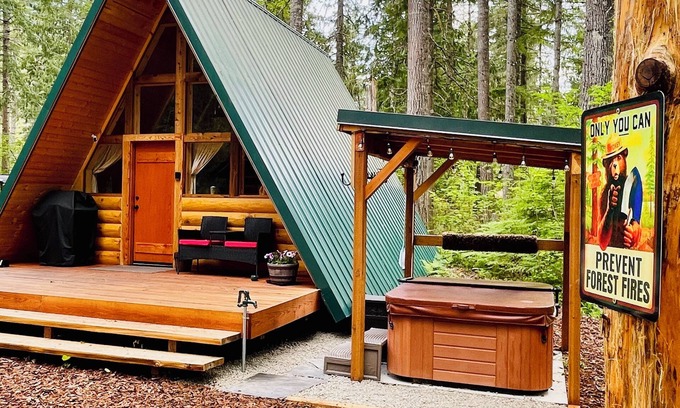 This cozy little A-Frame for two, offers seclusion amongst the fir trees and natural landscape. Perfect for relaxing after a day of outdoor activities. Enjoy the private hot tub, fire pit, & watching the local deer & birds who come to visit. The unique cedar swing will make you feel like a kid again! A full-size kitchen with dishwasher & a gas BBQ make mealtime easy. Close to Mt Rainier, local hiking, Big Creek & the Nisqually River. Plan a romantic little getaway at Just-Fir-Two!