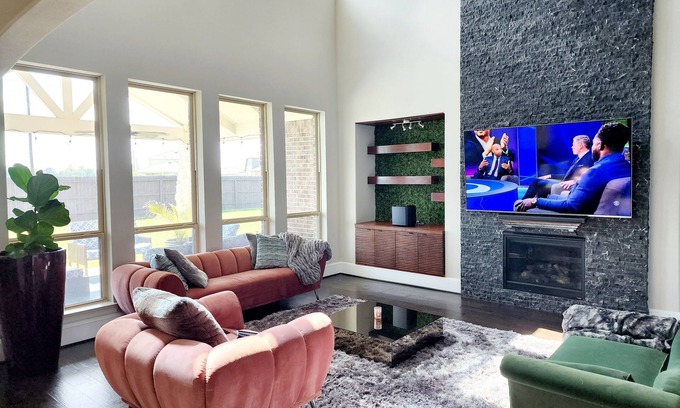My property is in a good safe neighborhood called Veranda, I listing out the 4 rooms and guest are allowed to use every amenities in the house, which include the living room, breakfast area, dinning room, gym, washer n dryer, patio and grill area, chef style kitchen, movie room, game room, home office. All rooms have TV.