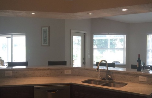 This is a smoke free home that is newly remodeled and sits on freshwater canal which features new furniture and appliances and is a three bedroom home that also has an office. Our home will comfortably sleep 6-8. SEA LA VIE’s floor plan features a bright open feeling with high ceilings. The living room, breakfast area and master bedroom all have glass doors to give you the ultimate view of the pool, canal and open space. The kitchen is furnished along with stainless steel appliances and utensils and also offers a large eat in kitchen with additional seating in the formal dining room. Off of the kitchen and living room, there is large lanai that comes furnished with a patio table and chairs for relaxing around the pool. The lanai is screened in to prevent flying pests from getting in and there is a view of the canal.