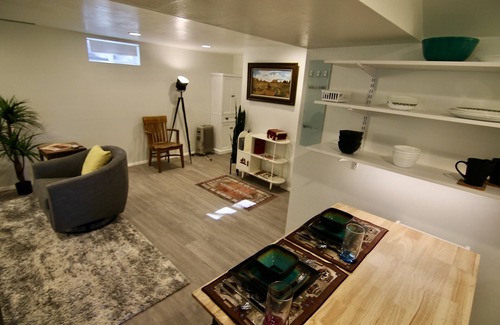 After hiking in the beautiful hot desert, come home to a cool subterranean apartment. Just off Main Street Blanding Bungalow basement apartment has all the amenities, so you can relax and enjoy your vacation.