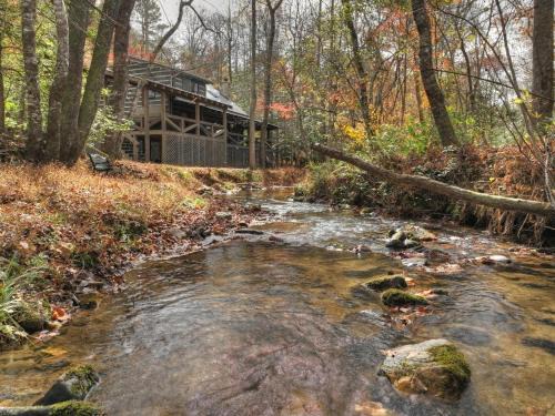 - Indulge in "Just One More Night", a pet-friendly creekfront retreat boasting a spacious outdoor deck, hot tub, firepit, and WiFi