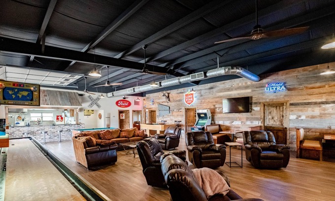 Only 5 miles from he boat ramp at Lake Alan Henry, this unique place offers everything you need! A fully functioning commercial kitchen, 7 big screen TVs, a firepit, shuffleboard, pool table, craps table and plenty of room to lounge around after a day on the water!