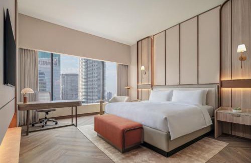 JW Marriott Hotel Jakarta is located in the city's prominent Mega Kuningan business district and a short walk to the shopping centers. It features an outdoor swimming pool, 5 dining options and free WiFi throughout. Every room comes with classic furnishings and floor-to-ceiling windows. It features tea/coffee making facilities, a flat-screen cable TV and a mini-bar. Sailendra Restaurant features international buffet, an open kitchen and a walk-in wine cellar. Blu Martini Bar & Lounge offers live entertainment and cocktails. Other dining options include Asuka Japanese Dining and Pearl Chinese Restaurant. You can exercise at JW Marriott Fitness Center or visit the Spa by JW for a relaxing massage. The hotel also provides car hire and concierge services upon request. JW Marriott Hotel Jakarta is 1.9 mi from Kembang Goela and 13 mi from Soekarno-Hatta International Airport.