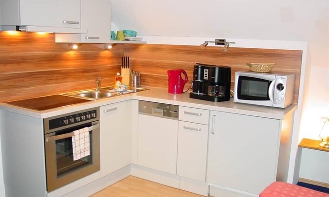 The 35 m² studio apartment Königstuhl has a comfortable double bed and a sofa bed for up to 2 persons. Shower and toilet are separated here. The kitchen is fully equipped with ceramic hob, oven, fridge freezer, microwave, dishwasher and coffee maker. From the balcony you have a wonderful view of the valley.