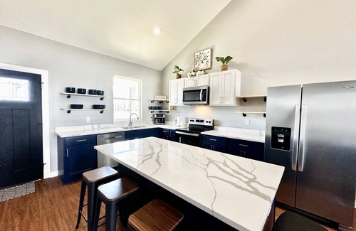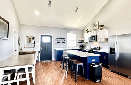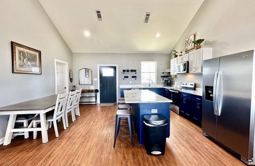 Inviting 3-bedroom, 2-bathroom property with a loft. The primary bedroom boasts a comfortable king bed, while both guest rooms feature queen beds. The loft adds extra space with two twin beds. Enjoy the luxury of spacious living, a wheelchair-accessible layout, and beautiful water views from this brand-new home. Ideal for 6-8 guests, the open living space, well-equipped kitchen, and a back patio make entertaining a delight. The property offers a secure environment with spotlights, ample driveway space, and 6-8 boat charging stations. Nestled near Toledo Bend Adventure Park, Cypress Bend Resort and Golf, it's an anglers dream with a community boat launch seconds away. Explore the beauty of the surroundings and relax in comfort at K&K Getaway.