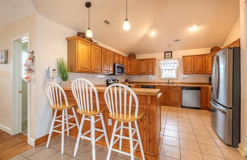 This expansive home boasts numerous amenities designed for comfort and enjoyment. Featuring a private pool with free heat during select weeks, a game room with a full-size pool table, and multiple plush master suites, K1215 Serenity provides ample space for family and friends to gather. The well-appointed kitchen and huge dining area with seating for 16 make hosting post-wedding breakfasts a breeze. You can unwind in the outdoor lounge area or treat yourself to spectacular ocean views from the hot tub on the mid-level deck—perfect for those romantic evenings.